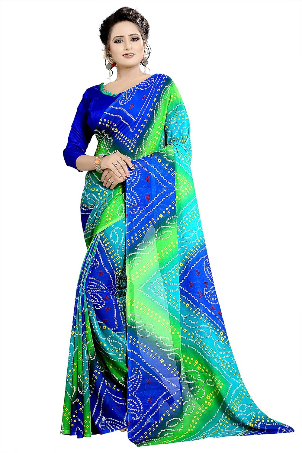 Kanchan Women's Soft Georgette Crepe Blend Saree with Blouse Piece (Multi-colour, Free Size)