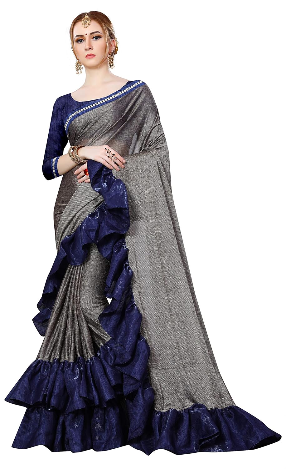 Magneitta Women's Georgette Solid Ruffle Saree (Gray)
