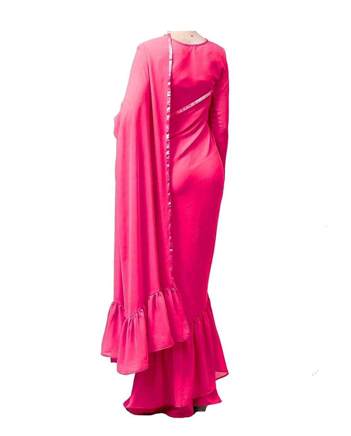 Magneitta Women's Georgette Solid Ruffle Saree (Pink)