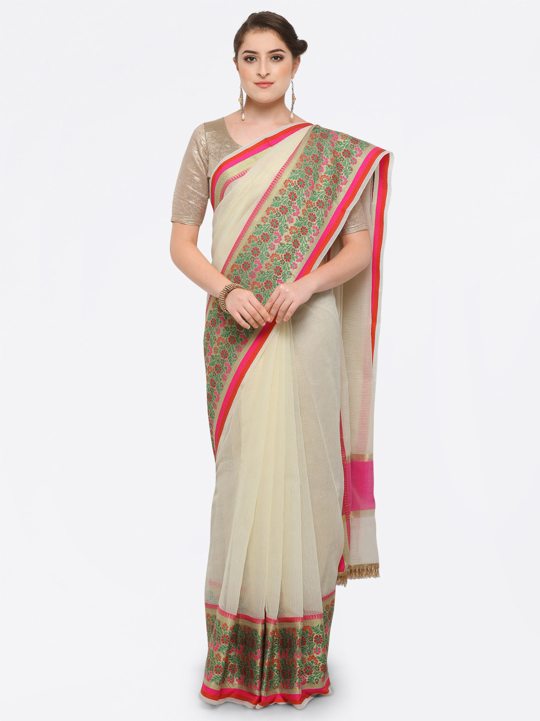 PRODUCT DETAILS Off-white kanjeevaram woven design saree, has a woven design border Blouse Piece The model is wearing a blouse from our stylist's collection, see the image for a mock-up of what the actual blouse would look like Size & Fit Length: 5.5 metres plus 0.8 metre blouse piece Width: 1.06 metres (approx) Material & Care Silk Cotton Dry-clean Specifications Type Kanjeevaram Print or Pattern Type Floral Occasion Traditional Border Woven Design Blouse Blouse Piece Saree Fabric Silk Cotton Wash Care Dry Clean(For more amazing products please visit https://www.handpickedproductsforyou.com/)