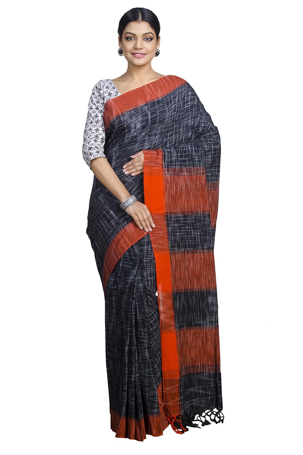 Tant Ghar Women's Cotton Bengal Handloom Khadi Saree with Running blouse (KC-02J)