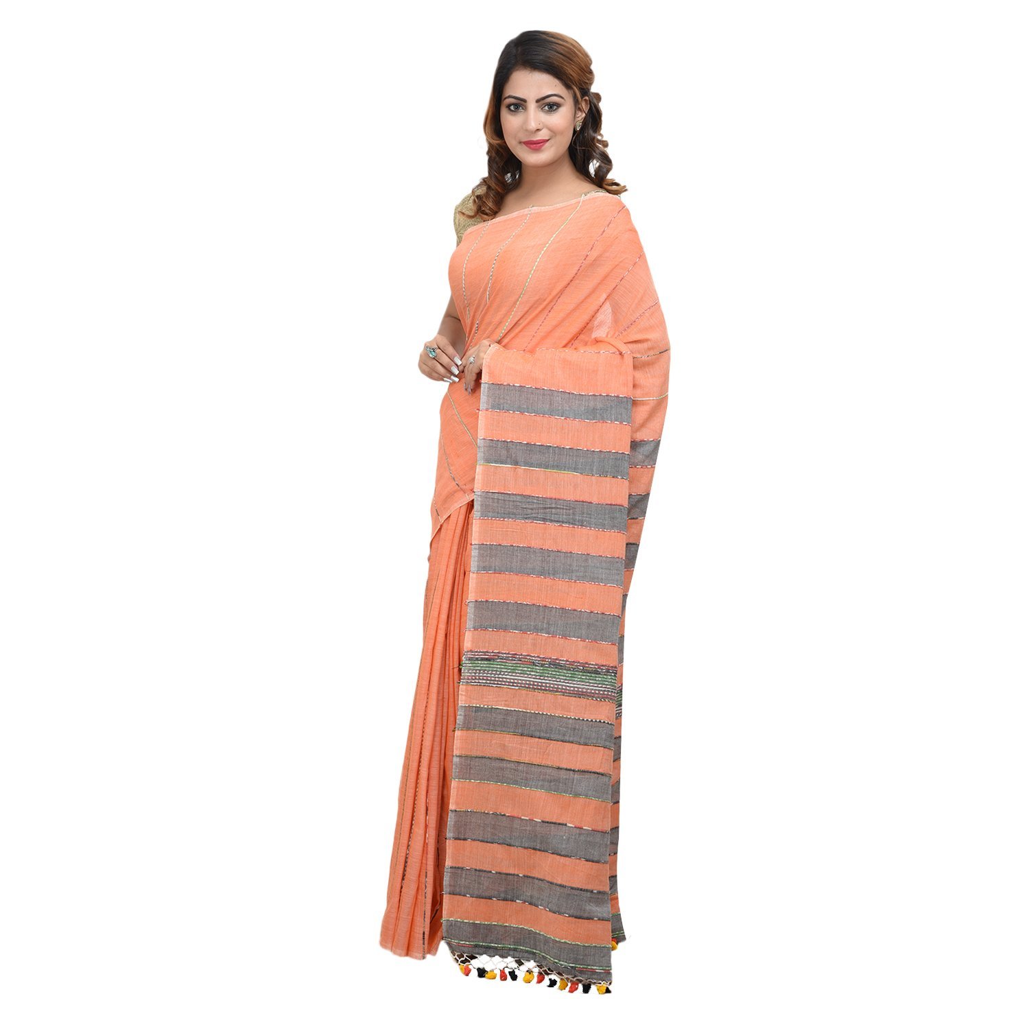 Show off your unique style in this gorgeous Bengal handloom linen saree in a striking color combination Length: 5.5 mtrs plus 0.9 mtr blouse piece Care: Dry clean first time recommended. Later,gentle wash in cold water with mild detergent like Ezee. Dry in shadow not sunlight, to preserve saree color and quality. Disclaimer: Actual product color might slightly vary due to photography effects.For more amazing products please visit https://www.handpickedproductsforyou.com/